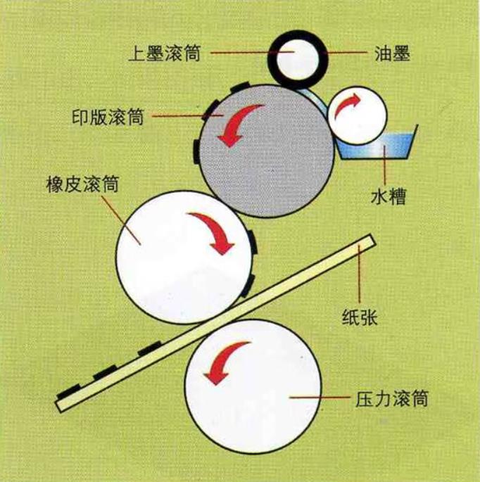 油墨先转移到橡胶布(橡皮布),再转印到纸上,利用橡皮布弹性获得清晰印迹。