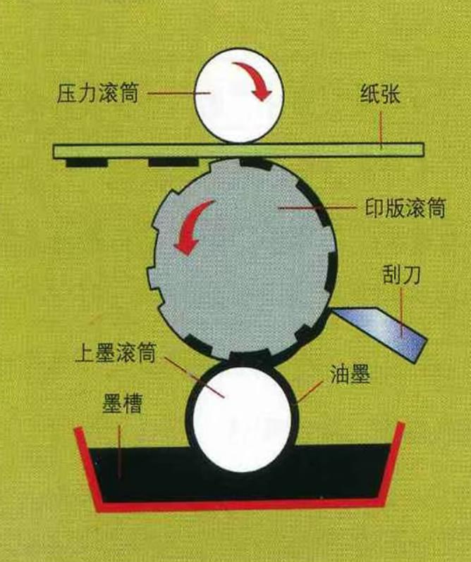 与凸版相反,凹版印刷的图文部分凹入版平面,空白部分保持原平面。油墨填充于凹槽内,通过巨大压力将油墨转移到承印物表面。